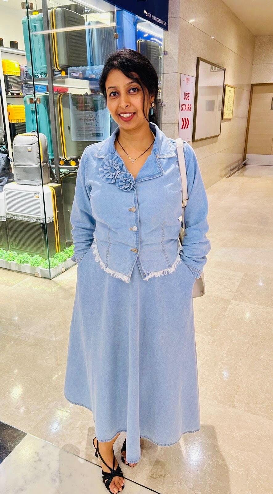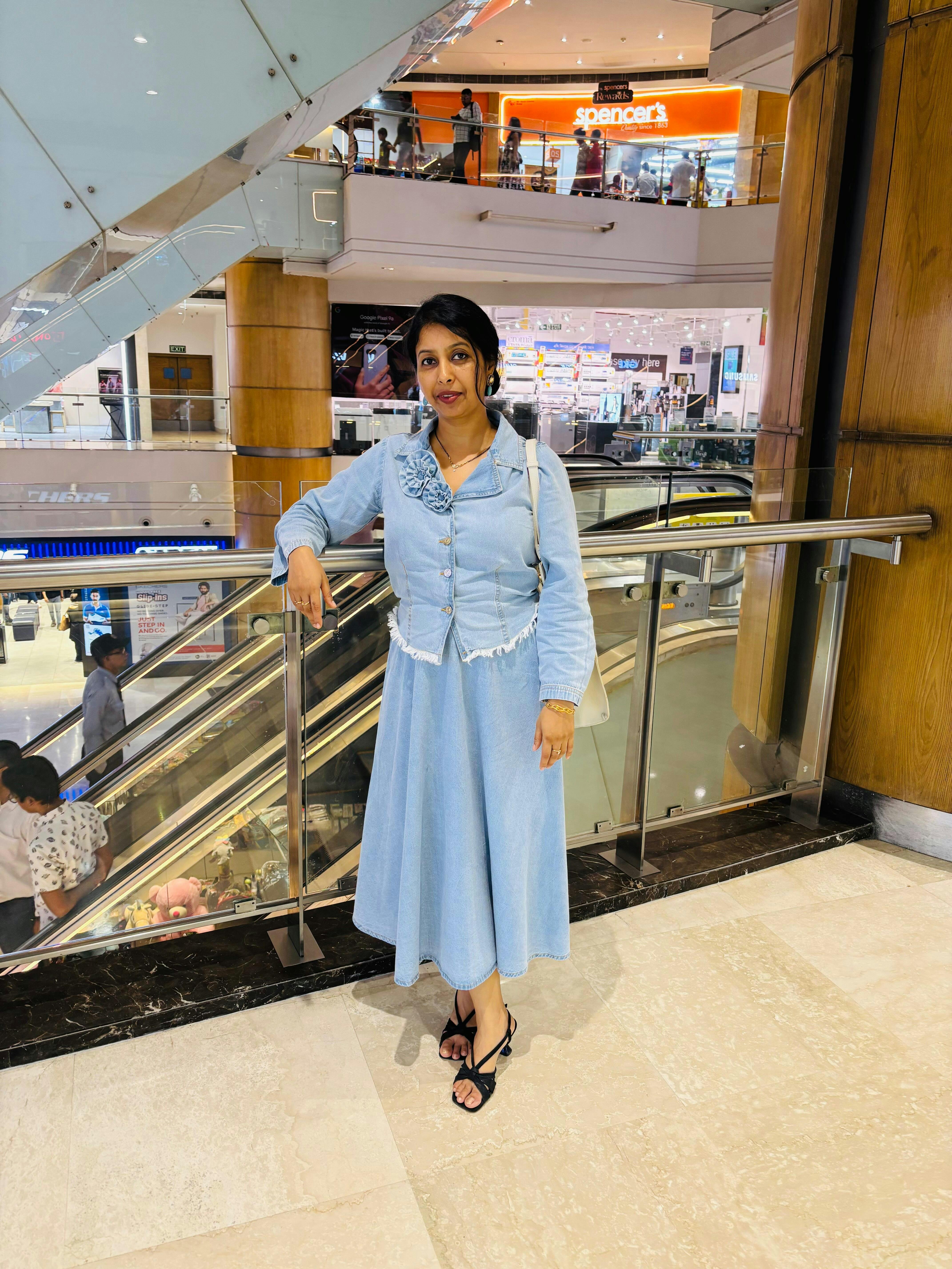 Skirt: Flowy and flattering, the midi-length skirt complements the structured top, creating a balanced silhouette.